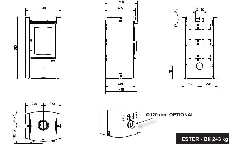 Diametru evacuare fum (Ø): 130 mm