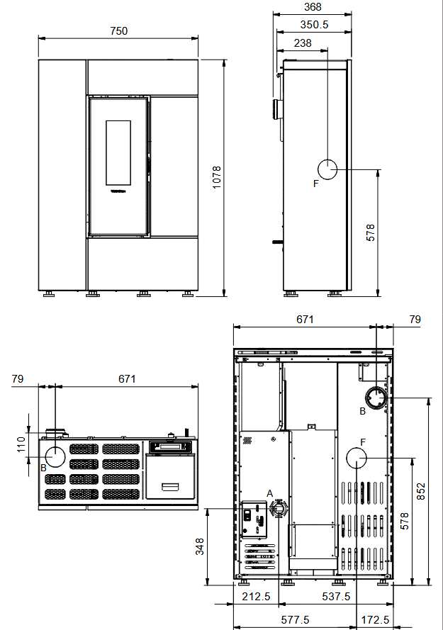 Diametru evacuare fum 80 mm.