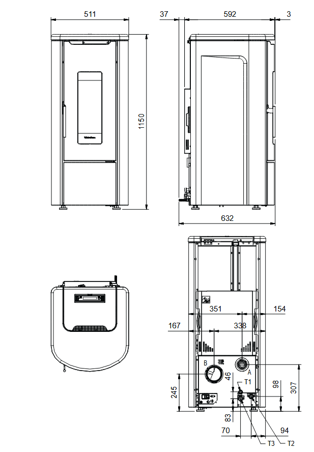 Dimensiuni (L x Î x A) 511 x 1150 x 632 mm.