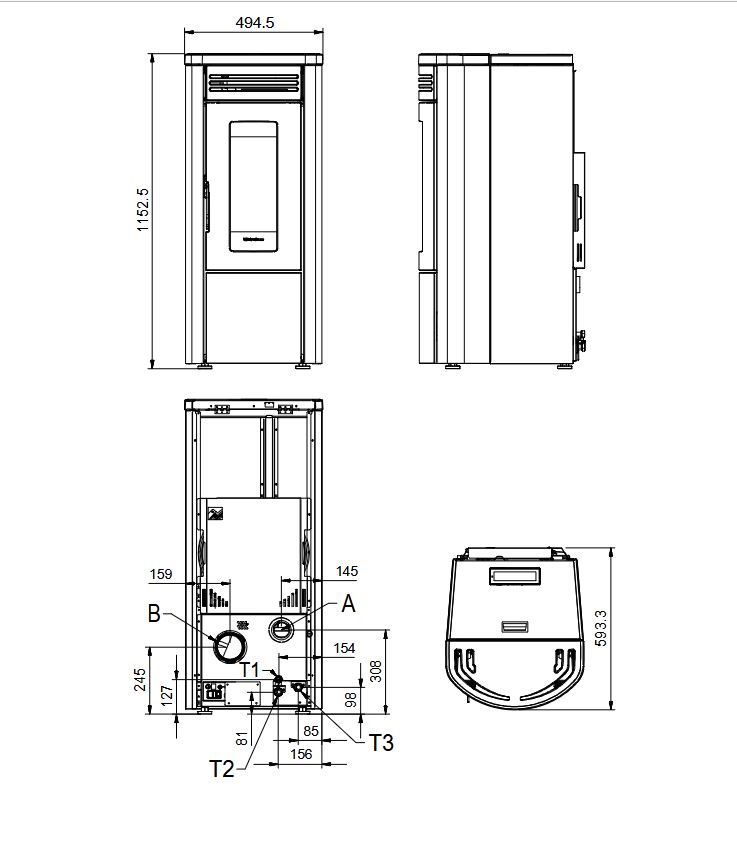 Diametru evacuare fum (Ø): 100 mm (spate/sus)