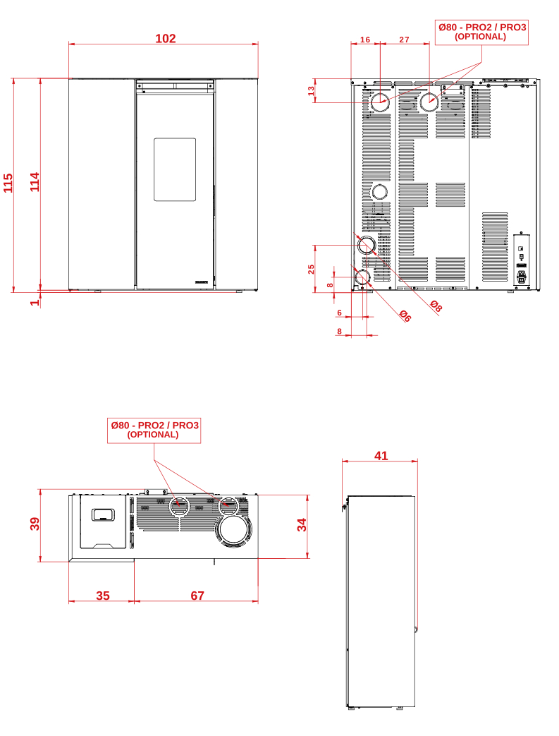 Kit Pro 2/3 opțional pentru canalizarea aerului cald în alte încăperi Ø 8 cm.